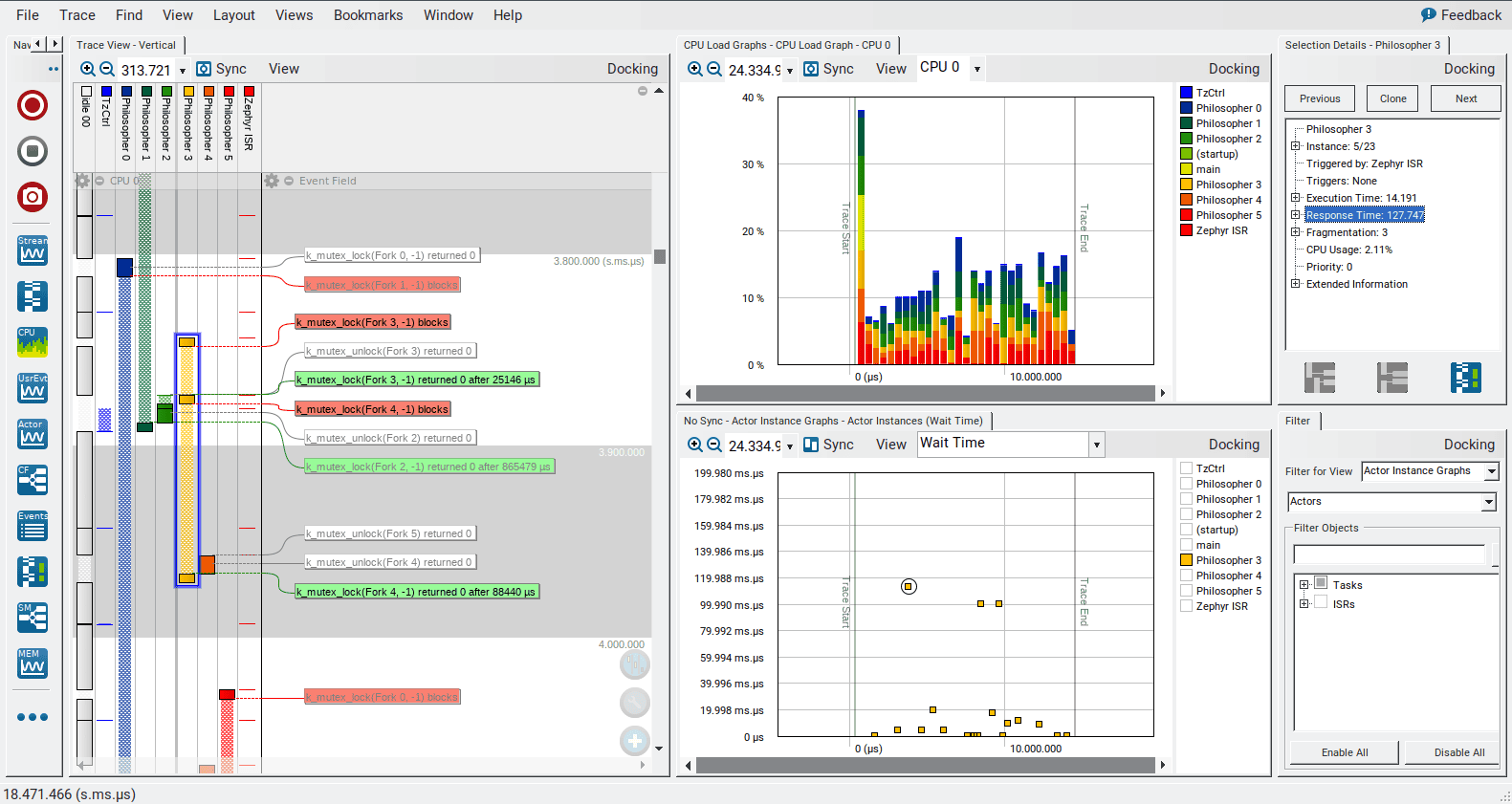 Percepio Tracealyzer is the premier trace visualization tool for developers of RTOS- or Linux based embedded software systems. It provides 30+ views of your application, covering everything from timing statistics and detailed event logs to overall program flow.
